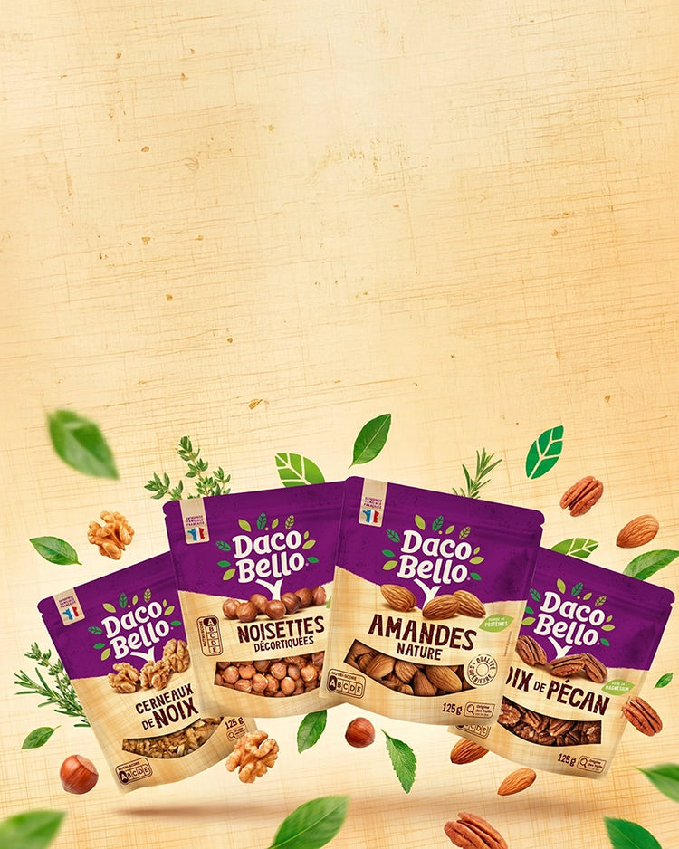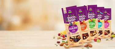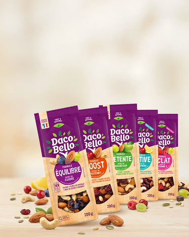 Daco Bello est une entreprise familiale française. Notre mission ? Rendre votre quotidien plus savoureux, et plein de peps ! Le tout, dans une démarche durable. Un snacking équilibré et gourmand ? C'est possible !